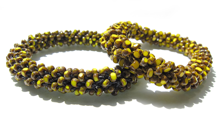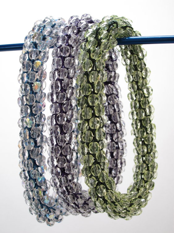 Aviva picked up bead crochet as something to do on the subway. "I've always liked making things and working with my hands. Crocheting is meditative." Her bracelets are slightly stretchy and fit most wrists.